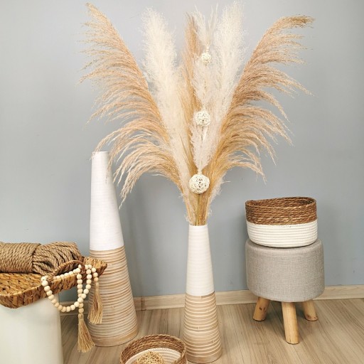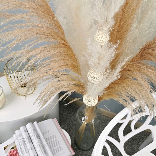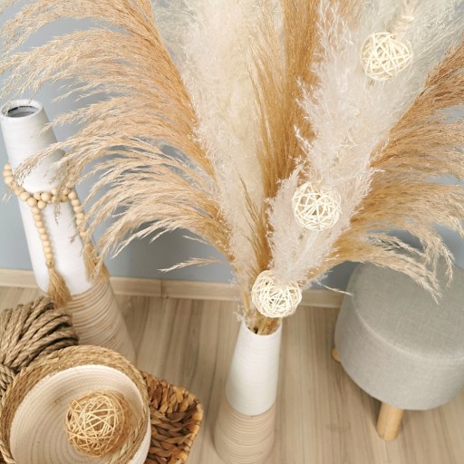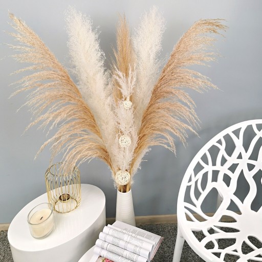 "WOW" - to słowo, które natychmiast usłyszysz od znajomych i przyjaciół, gdy zobaczą twoją puszystą trawę pampasową! Gałązki trawy pampasowej zawsze przyciągają wzrok i tworzą wspaniały przytulny klimat, gdziekolwiek je postawimy.