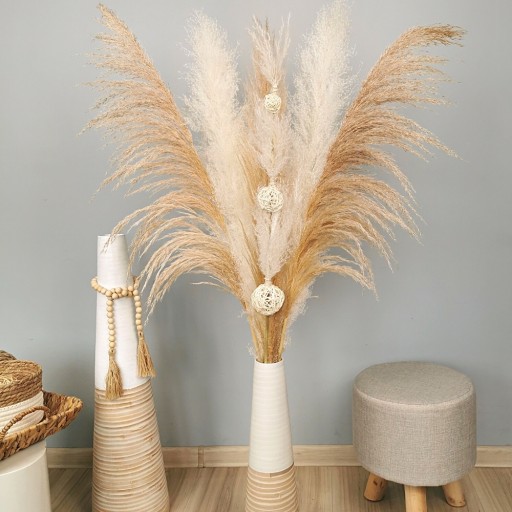 Dekorowanie bukietami z trawy pampasu jest zarówno eleganckie jak i wygodne. W przeciwieństwie do żywych roślin, suszona trawa pampasowa nie wymaga podlewania i wspaniale się utrzymuje przez długi czas.
