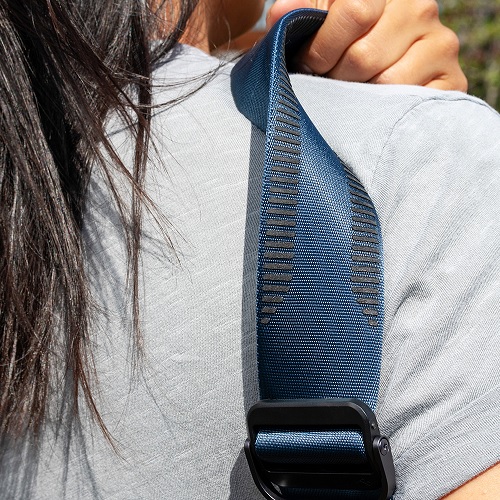 Prosta i niezmiernie szybka regulacja długości w zakresie od 99 cm do 137 cm sprawia, że pasek doskonale nosi się zarówno na szyi, na ramieniu czy przewieszony przez ramię. Dodatkowo zmiana położenie jest naprawdę niezwykle prosta.