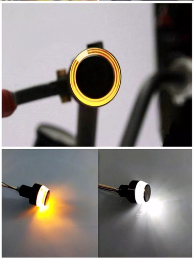 Końcówki kierownicy dostosowane do kierownicy 22 mm zintegrowane z wbudowanym światłem białym i pomarańczowym LED.