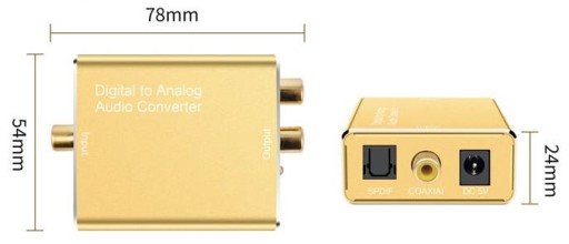 Konwerter umożliwia podłączenie urządzeń wyposażonych w cyfrowe wyjście optyczne audio (Toslink/SPDIF) lub Coaxial (telewizor, dekoder, komputer, laptop, konsole itp.) do kina domowego, amplitunera, wzmacniacza, głośników lub słuchawek wyposażonych w złącze analogowe typu RCA/Cinch lub mini-jack 3,5mm.