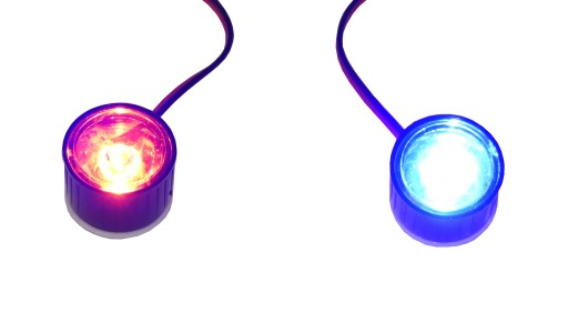 Komplet składa się z miniaturowej centralki sterującej oraz dwóch okrągłych lampek diodowych świecących stroboskopowym światłem w kolorze niebiesko / czerwonym. Stroboskopy mogą stanowić ciekawy gadżet w pojazdach akumulatorowych.