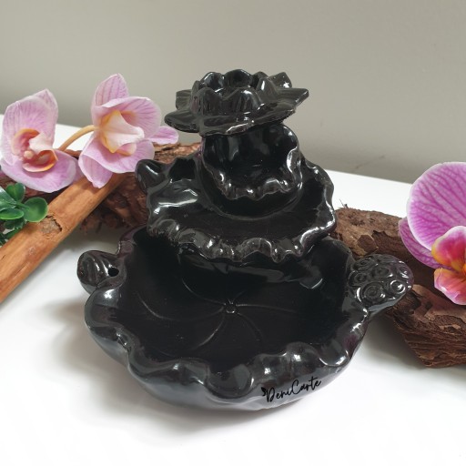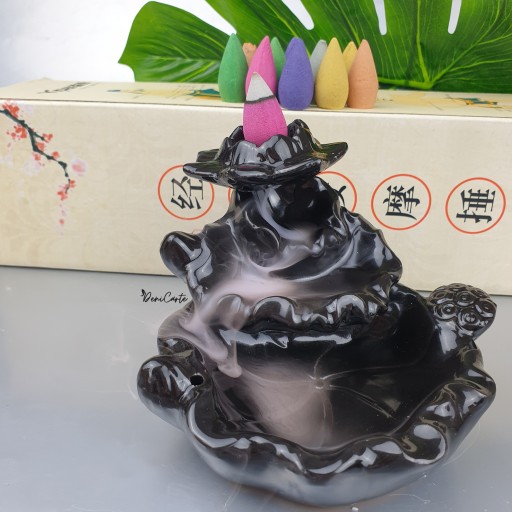 Kominki Zapachowe typu Backflow zostały specjalnie zaprojektowane tak, aby dym z kadzidełka spływał kaskadą w dół do pojemniczka na dole kominka. Dym z kadzidełka, który niczym mgła otacza kominek i spływa niczym mistyczna rzeka po wyżłobieniach oraz rowkach kominka.