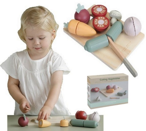 Do zestawu została dołączona drewniana deseczka wraz z bezpiecznym, drewnianym nożykiem. Wszystkie warzywa można przeciąć na pół i łatwo skleić ponownie za pomocą rzepów. Owoce idealnie sprawdzą się do nauki zasad zdrowego żywienia już od najmłodszych lat.