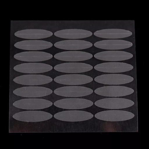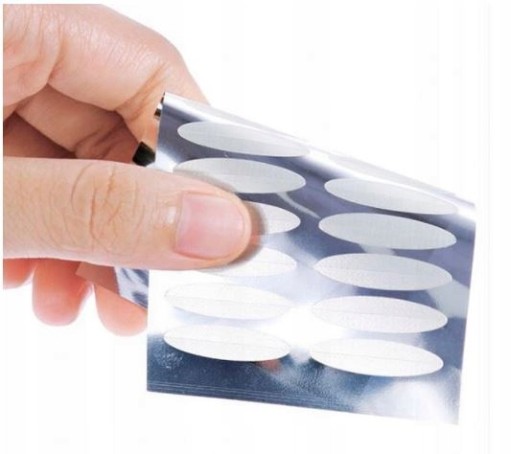 Samoprzylepne tasiemki do podklejania powiek korygujące opadające powieki. Dzięki materiałowi z którego zostały wyprodukowane (elastyczna medyczna guma) załamanie można układać w dowolny sposób