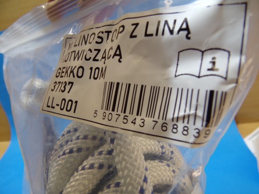 Linostop z linką statyczną kotwiczącą GEKKO 10m z elastycznym mocowaniem. Zestaw przeznaczony jest do pracy w pionie. Urządzenie przesuwa się po linie w górę lub w dół i blokuje się w przypadku szarpnięcia lub odpadnięcia.