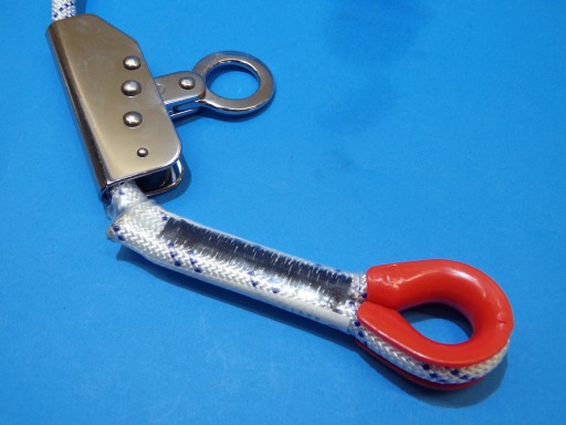 Lina o średnicy 12 mm zakończona z jednej strony kauszą z tworzywa sztucznego i oraz zaszytą pętlą z drugiej