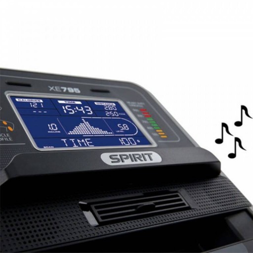 Maszyna eliptyczna Spirit XE795 posiada nowoczesny komputer z bezpośrednim przejściem do programów treningowych. Na wyświetlaczu prezentowane są najważniejsze parametry każdej sesji ćwiczeń. Wyświetlacz graficzny pozwala łatwo kontrolować tętno maksymalne. Komfort dopełniają: miejsce na bidon, wentylator przyjemnie chłodzący w trakcie treningu, półka na tablet, głośniki z wejściem mp3.