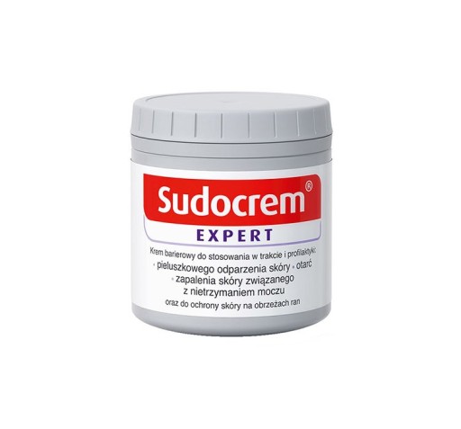 Sudocrem Expert, krem barierowy, 60 g Wyrób medyczny. Dla dorosłych i dzieci od 1. dnia życia. Do stosowania przy pieluszkowym odparzeniu skóry, otarciach, zapaleniu skóry związanym z nietrzymaniem moczu oraz do ochrony skóry na obrzeżach ran. Łagodzi podrażnienia, zmniejsza dyskomfort i redukuje zaczerwienienie już po pierwszym dniu stosowania.