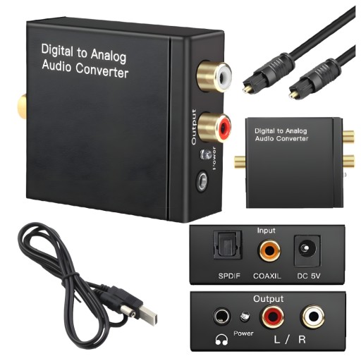 - Kierunek: z Toslink na RCA, Coaxial na RCA / jack 3,5