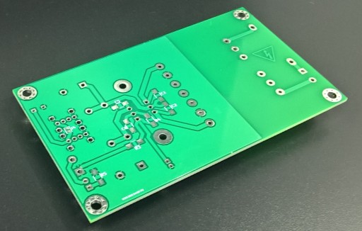 Płytka dwustronna, metalizacja otworów, soldermaska, wymiary płytki 100x57 mm.