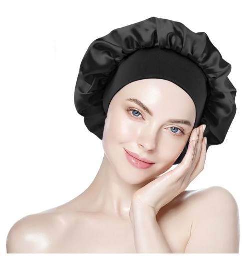 ✔️ Satyna zapobiega także elektryzowaniu się kosmyków, co pozwala dłużej cieszyć się gładką i zadbaną fryzurą. Szeroka, elastyczna gumka zapewnia stabilne utrzymanie czepka na głowie, bez ucisku i dyskomfortu.