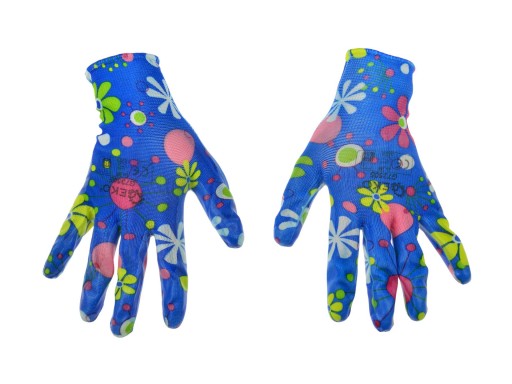 Rękawice robocze ogrodowe damskie, pokryte warstwą nitrylu.