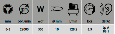 - Prędkość obrotowa do [1/min]: 22000