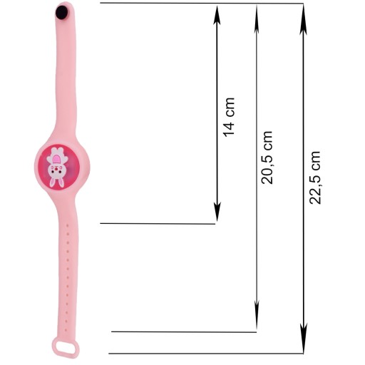 Zegarek pasuje zarówno na dziecięcą rączkę jak i na osobę dorosłą. Posiada regulację długości dzięki temu można go dopasować do każdej ręki