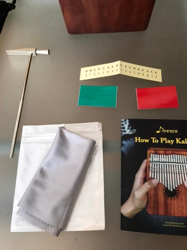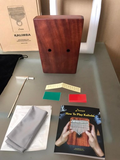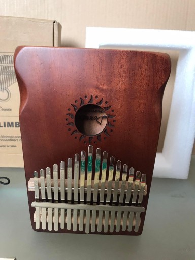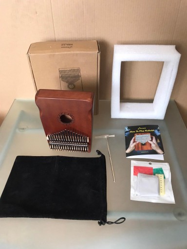 Produkt z ekspozycji sklepowej. Pokrowiec na instrument posiada przybrudzenia widoczne na zdjęciach. Zdjęcia przedstawiają rzeczywisty wygląd oraz zawartość oferowanego zestawu. Instrukcja do kalimby nie jest w języku polskim. Opakowanie oryginalne podniszczone.