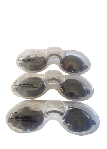 Przedmiotem aukcji są okularki do opalania na gumce produkowane przez firmę Cosmedico.