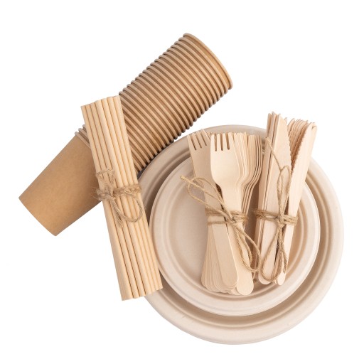 Zestaw dla 12 osób z trzciny cukrowej/drewniany - Natural