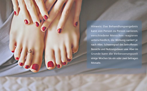 Uwaga: wynik leczenia może się różnić w zależności od osoby, różni ludzie mają różne reakcje, efekt różni się w zależności od wieku, nasilenia dotkniętego obszaru i czasu użytkowania itp. Ale w zasadzie czas poprawy może wynosić od kilku tygodni do jednego lub dwóch miesiące.