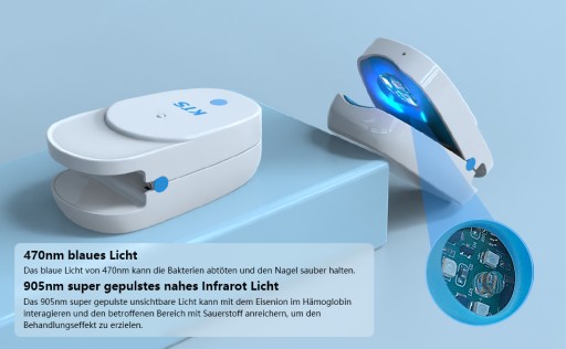 Urządzenie do leczenia grzybicy paznokci KTS z wysoce skuteczną i naturalną funkcją terapii światłem jest bezbolesne i nie ma żadnego ryzyka ani skutków ubocznych. Niebieskie światło o długości 470nm może zabić bakterie, utrzymać paznokieć w czystości, podczas gdy super-pulsujące niewidzialne światło 905nm może wchodzić w interakcje z jonami żelaza w hemoglobinie i natleniać dotknięty obszar, aby uzyskać efekt leczenia. Jest zdrowy i niezawodny, a po zabiegu nie jest wymagana żadna skomplikowana procedura.