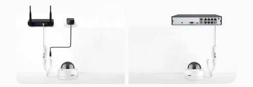 - Podłącz kamerę monitorującą PoE do NVR za pomocą kabla sieciowego zarówno do transmisji danych, jak i zasilania, bez plątaniny przewodów.
