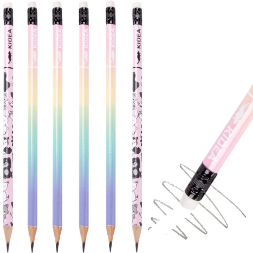 6X Ołówek trójkątny z gumką z nadrukiem Kidea