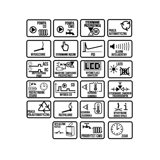 - Automatyczne sterowanie kominkiem - wystarczy ustawić tylko temperatury CO i CWU