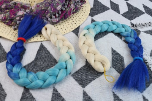 Włosy syntetyczne w przepięknym wariancie kolorystycznym - blond-turkusowo-granatowy. Wykonane z gładkiego i przyjemnego w dotyku henlonu.