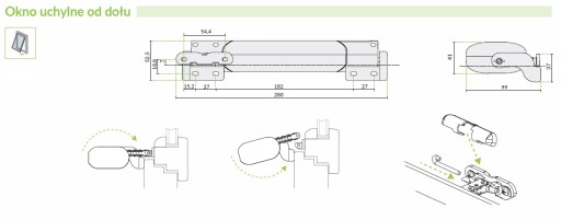 - Mocowanie siłownika - 1 kpl (konsola do okna uchylnego na zewnątrz)