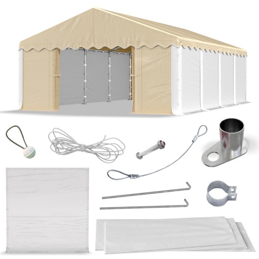 Wjazdy oraz ścianki boczne ( każda ok. 2 m długość ) to osobne segmenty montowane za pomocą specjalnych gum montażowych - dzięki temu możesz tworzyć dowolne aranżacje swojego namiotu.