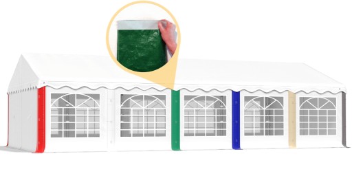 Wjazdy oraz ścianki boczne ( każda ok. 2 m długość ) to osobne segmenty montowane za pomocą specjalnych gum montażowych - dzięki temu możesz tworzyć dowolne aranżacje swojego namiotu.