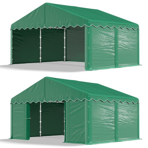 3. Otwarte główne wejścia/wjazdy oraz odpięte wszystkie ścianki z jednego boku namiotu.