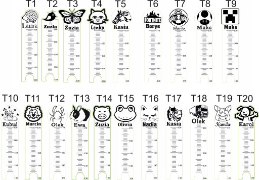 Drewniana miarka umożliwia nie tylko monitorowanie wzrostu naszych pociech, również stanowi piękną i klimatyczną ozdobę pokoju dziecięcego. Duży wybór wzorów pomoże trafić w wymagające dziecięce gusta.
