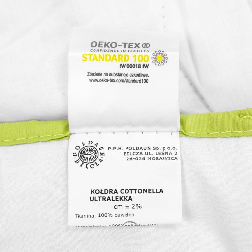 Atesty dają pewność, że kołdra nie zawiera substancji niebezpiecznych, mogących uczulać i powodować dyskomfort podczas snu.