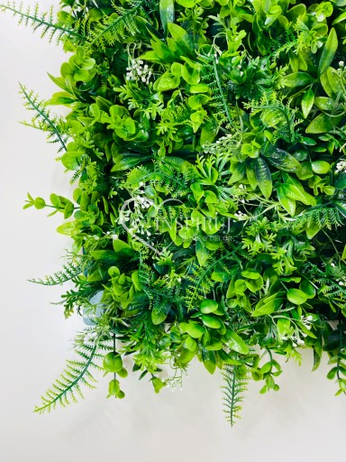 ✅ Sztuczne zielone panele z liści paproci, eukaliptusa, tui bukszpanu oraz gipsówki.