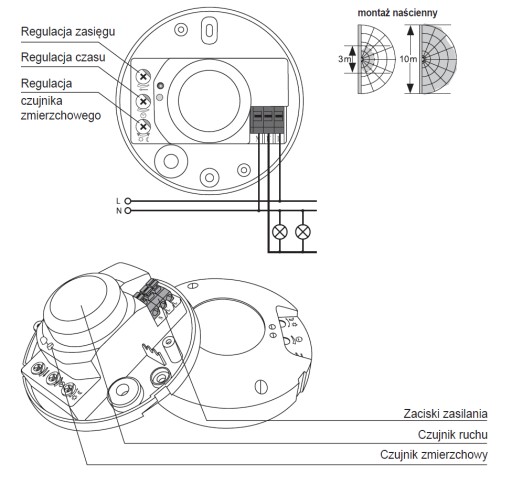 - wbudowany regulowany czujnik zmierzchowy (2 ÷ 2000 lx),