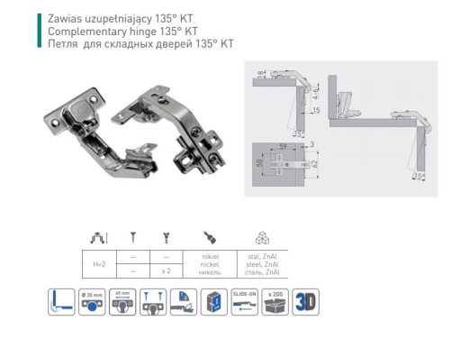 - 2 szt - Zawias kątowy 135° uzupełniający