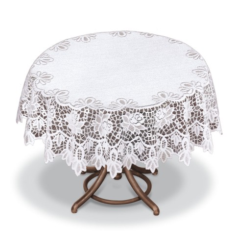 Oferta dotyczy obrusu okrągłego żakardowego w kolorze białym, obrus w bogaty wzór pięknie podkreśli kształt stołu.
