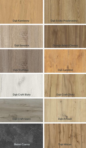- płyta laminowana 18 mm góra-dół dostępna w kilku wersjach kolorystycznych