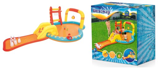- WIELE ELEMENTÓW – w zestawie znajduje się wiele elementów, w tym m.in. piłki i kosze do gry, pryskająca wodą piłka, basen, zdejmowana zjeżdżalnia, kręgle, dmuchane kółka oraz dmuchana poduszka, które stanowią urozmaicenie i frajdę, pozwalając bawić się Twojemu dziecku bez końca.