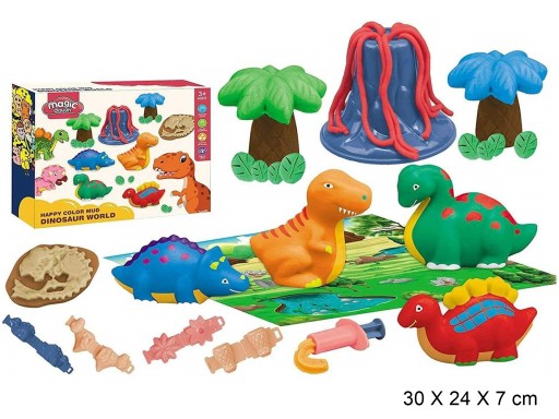 Zestaw masy plastycznej z akcesoriami – dinozaury.
