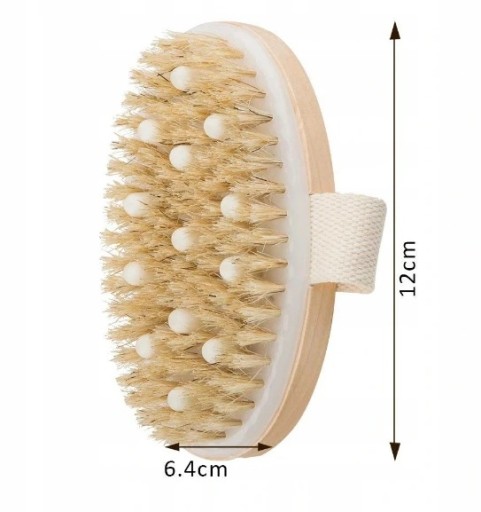 Nasza szczotka antycellulitowa ma drewnianą rączkę i pasek z białej tkaniny, dzięki czemu można łatwo i wygodnie trzymać szczoteczkę bez zsuwania się, można ją również powiesić na ścianie, aby była w zasięgu ręki i była czysta, szczotka do cellulitu jest bardzo wygodna do codziennego użytku.