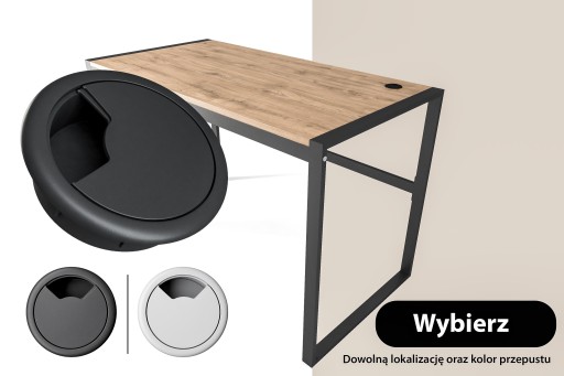 W cenie biurka wykonujemy gratis jeden przepust kablowy w dowolnym miejscu w kolorze : Czarnym, lub szarym.