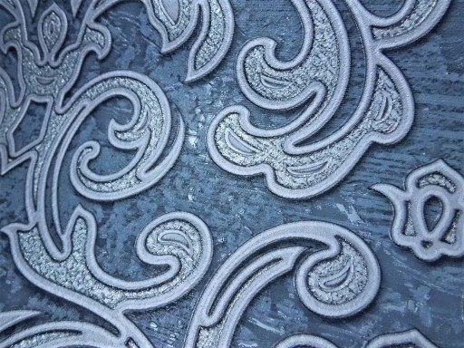 - Struktura: grube tapety z wytłaczanymi ornamentami