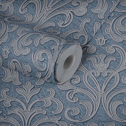 Opis: Wytłaczane ornamenty z delikatnie połyskującym wtopionym w nie kryształkami. Piękne i bogate tapety w stylu glamour przeznaczone do eleganckich pomieszczeń.