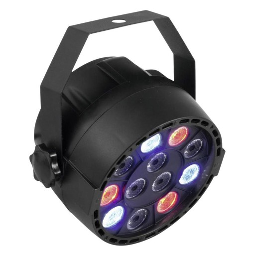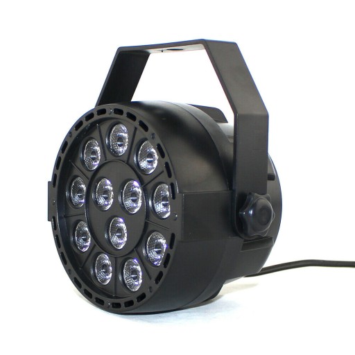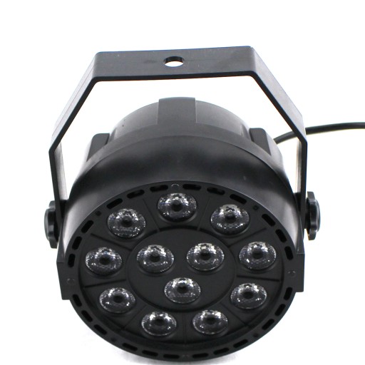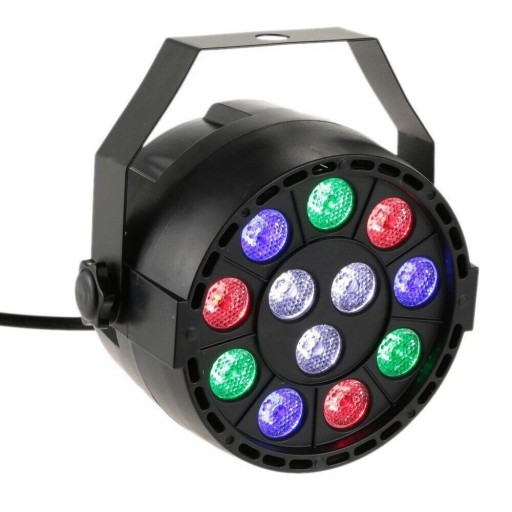 - Posiada diody LED 12x 1W Multichip RGB i może być sterowane przez DMX (7 kanałów).Ten nie ma pilota i nie można nim sterować.Oczywiście ma też wbudowane programy, fabrycznie zapisane kolory, efekt stroboskopowy, 0 - 100% ściemniacz i sterowanie muzyką oraz tryb master/slave.Dzięki niezwykle kompaktowym rozmiarom może być również idealnie używany jako oświetlenie wiązki.