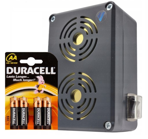 Odstraszacz zasilany czterema bateriami LR6 (tak zwanymi paluszkami; oryginalne baterie DURACELL są dołączone do zestawu) doskonale sprawdza się tam, gdzie nie ma zasilania 230V. Jego skuteczność potwierdza wielu zadowolonych Klientów, którzy przy jego pomocy w krótkim czasie pozbyli się gryzoni z domków letniskowych, poddaszy, garaży, komórek i spiżarni.