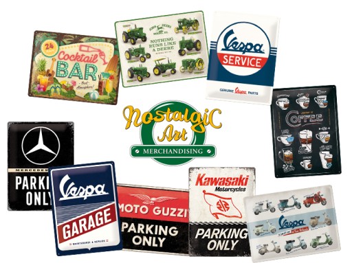 W ofercie Nostalgic-Art wszystko stare jest nowe. Nasza różnorodność produktów z blachy ocynowanej oferuje nostalgiczne obrazy od klasycznych reklam do gwiazd filmowych i znanych na całym świecie marek takich jak Harley-Davidson, Coca-Cola, Persil, Volkswagen, John Deere, BMW i wielu innych. Znajdziesz tu prezenty w stylu retro dla każdego i do każdego domu. Nasze produkty idealnie pasują do wymyślnych scenariuszy użytkowania. Czy jako prezent dla bliskich i kochanych, jako ulepszenie wystroju domu, czy po prostu jako część twojej kolekcji w Nostalgicznym stylu. Produkty te uświetniają stare czasy z uśmiechem.