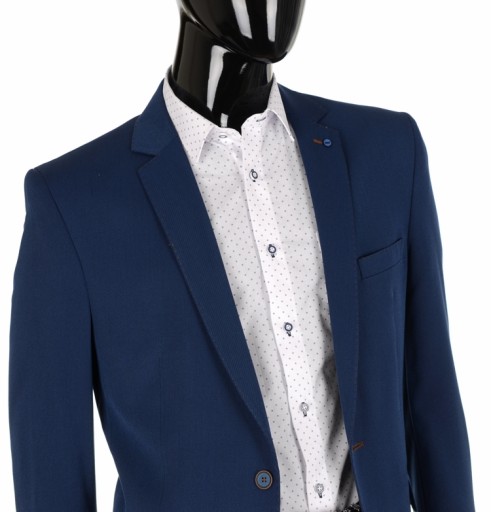 - tkanina 70% poliester, 25% wiskoza, 5% laycra zapewnia to iż marynarka będzie niemnąca