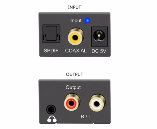 WEJŚCIE CYFROWE: TOSLINK I COAXIAL, WYJŚCIE ANALOGOWE: 2x CINCH (RCA) - STEREO
